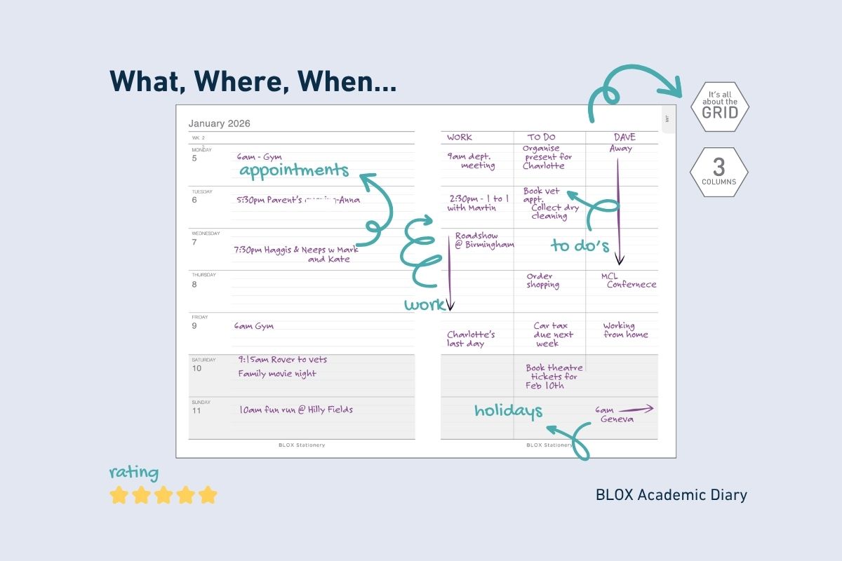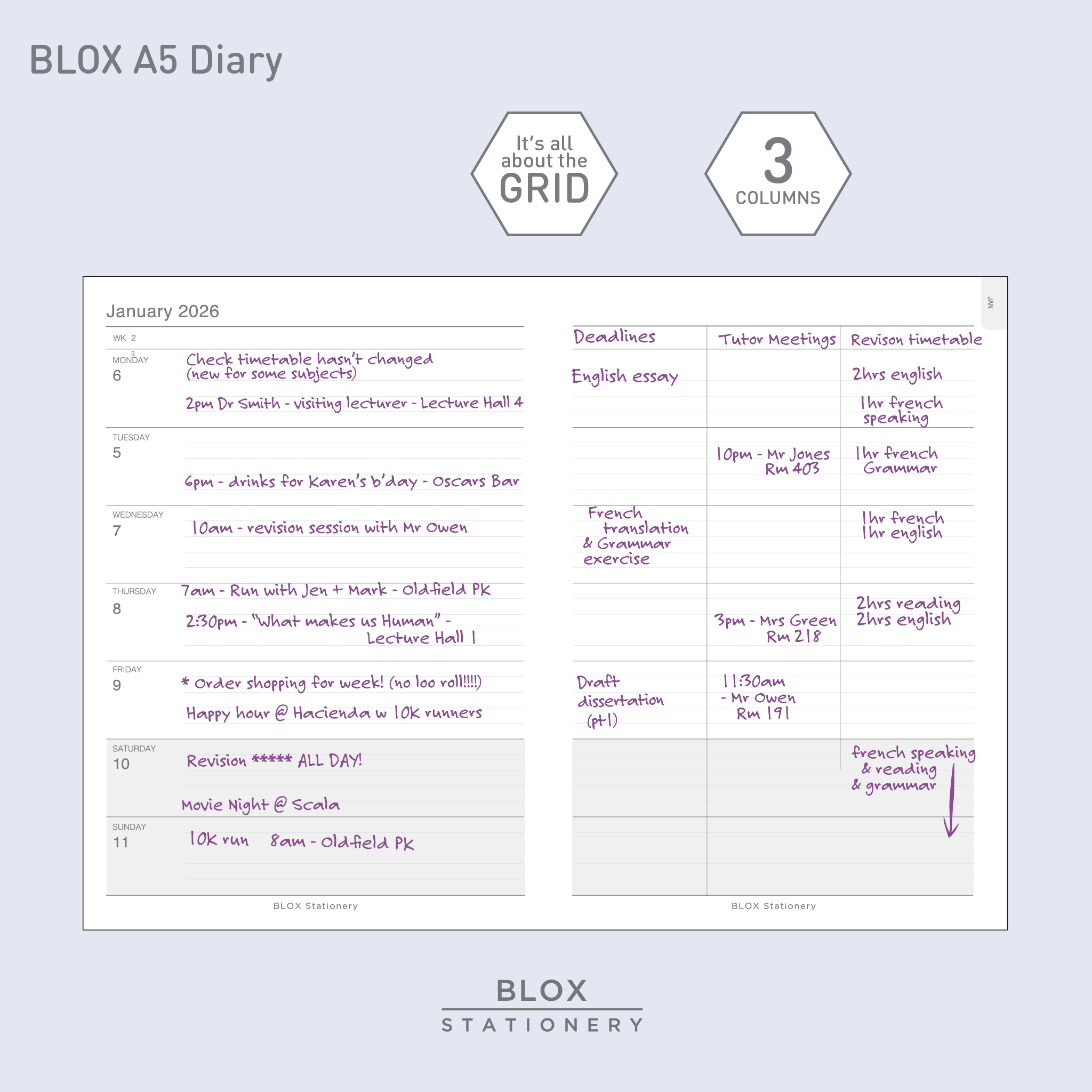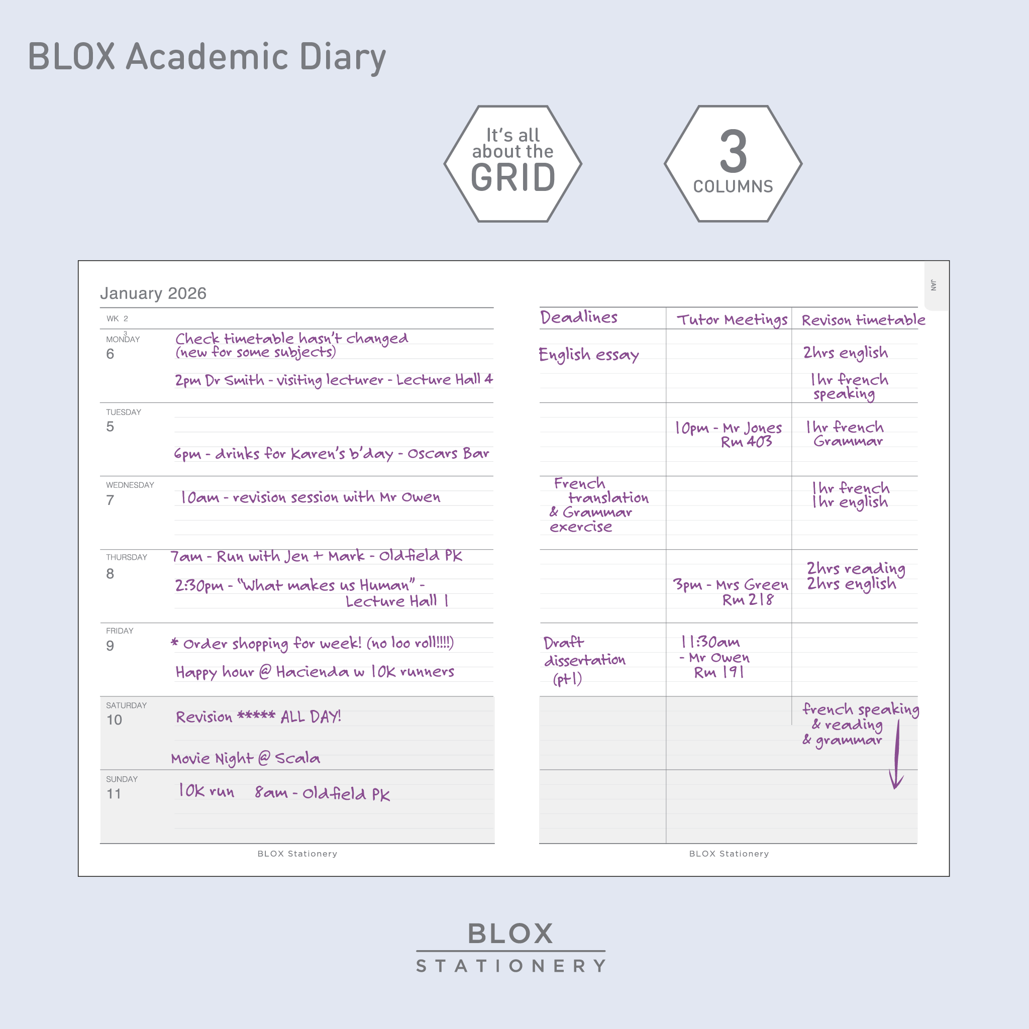 The GRID layout in the BLOX Academic Diary is particularly helpful for students because it supports structured planning, which is key to academic success. Here's how it helps: 🗂️ 1....