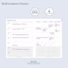 The BLOX Academic Planner is all about our GRID layout: see your weekly schedule at a glance and minimise the scheduling chaos of your busy life. A page for appointments, notes, etc and 4 columns on the opposite page to separate projects, activities, lists - however you organise your life.